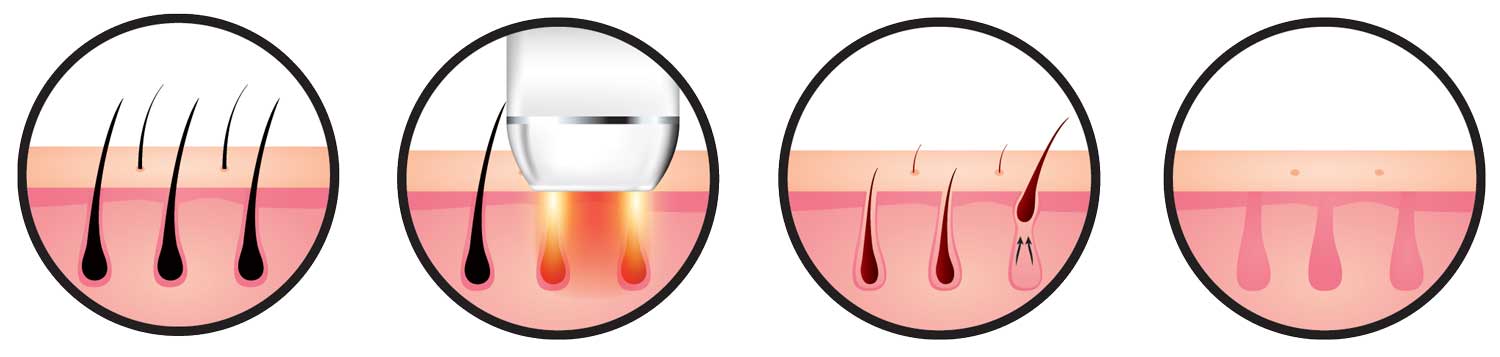 The laser’s energy bypasses your skin and goes straight to the shaft of your unwanted hair. The laser dislodges the hair — which falls out either immediately or over the next two weeks — and disrupts the integrity of the follicle that houses it. After laser treatment, the follicle can no longer produce hair.